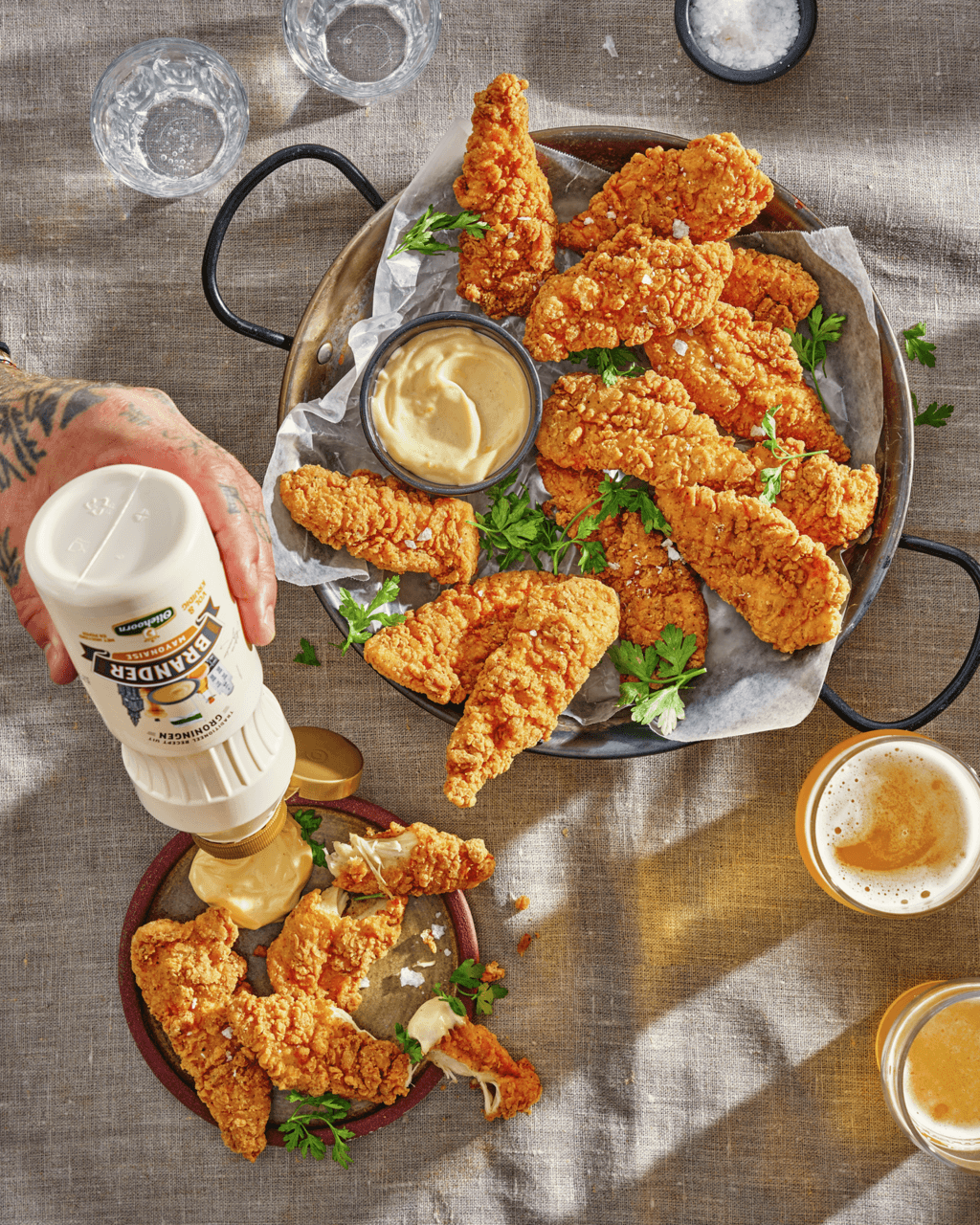 Zin in iets knapperigs en hartigs? Deze gefrituurde kip met frisse Brander mayonaise dip is pure comfort food. Perfect voor bij de borrel, een feestje of gewoon een lekkere avond thuis. Serveer met wat verse peterselie en geniet van die perfecte crunch bij elke hap!