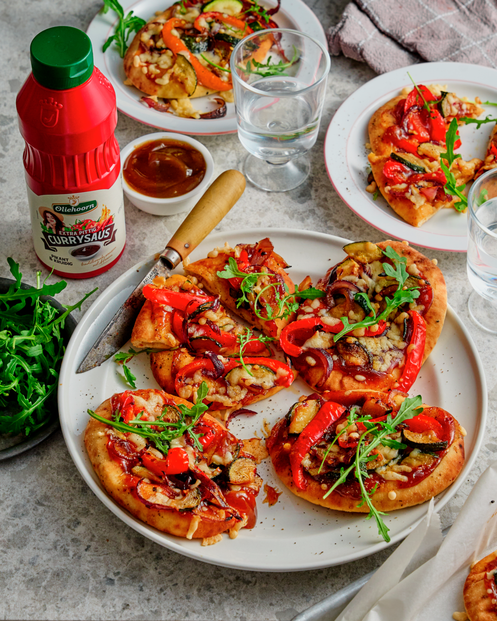 Mini naan pizza’s met curry-groenten