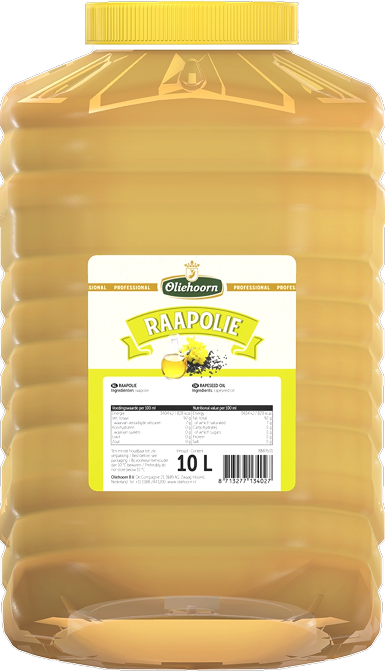 Warm of koud, slaolie (raapolie) is geschikt voor alle bereidingen. De slaolie (raapolie) van Oliehoorn is neutraal van smaak en is daarmee een uitstekende basis voor salades, dressings en marinades. Oliehoorn slaolie (raapolie) is verkregen uit raapzaden (Brassica napus, Brassica rapa). De ruwe olie wordt geraffineerd, gebleekt en gedeodoriseerd. Het eindproduct is een hoogwaardige, volledig geraffineerde olie.